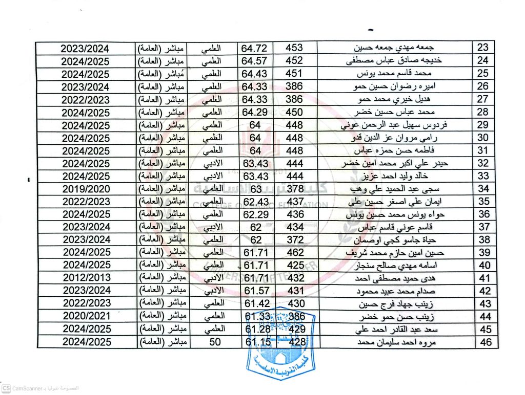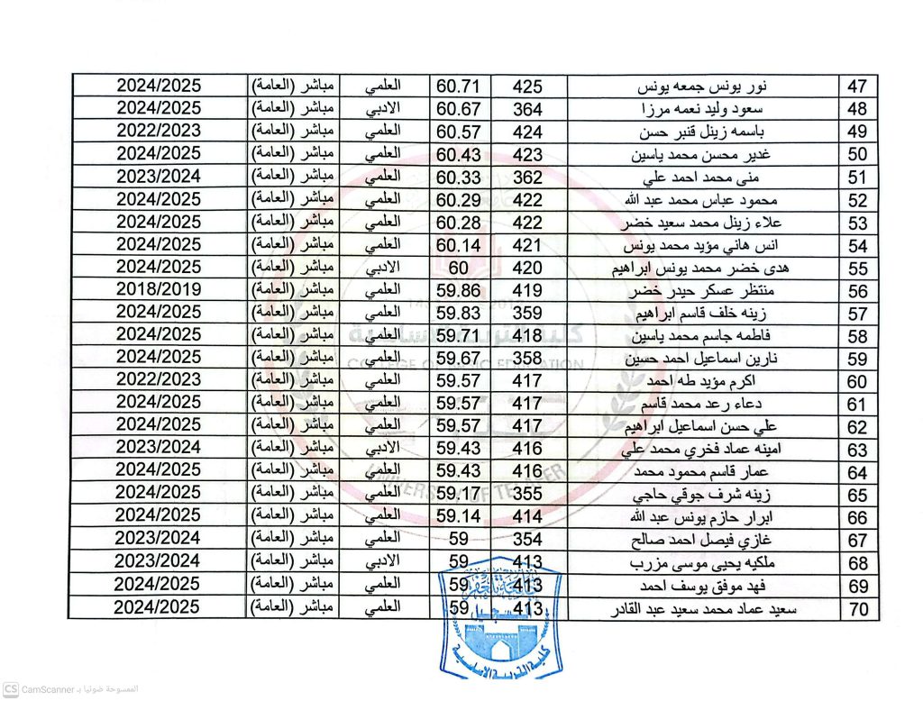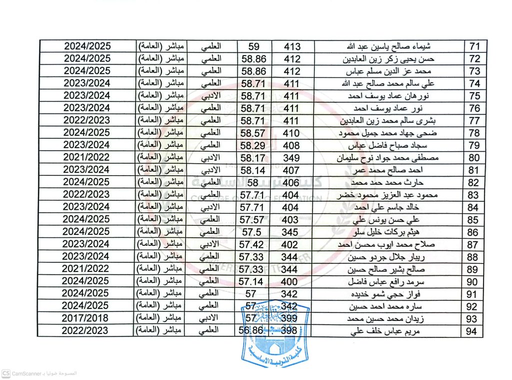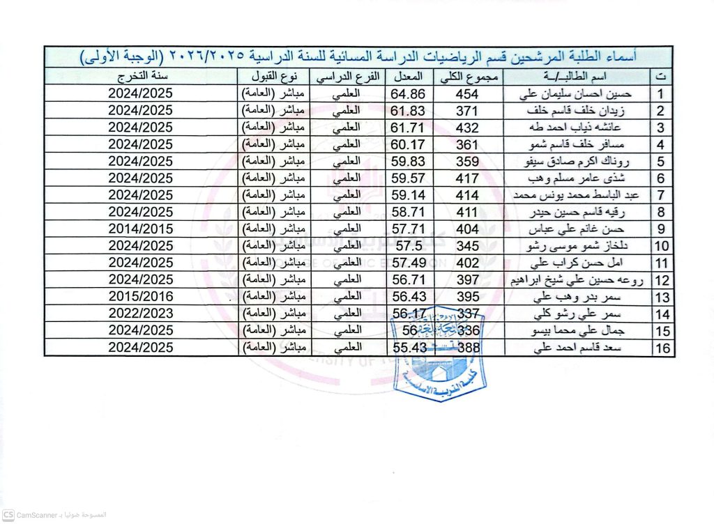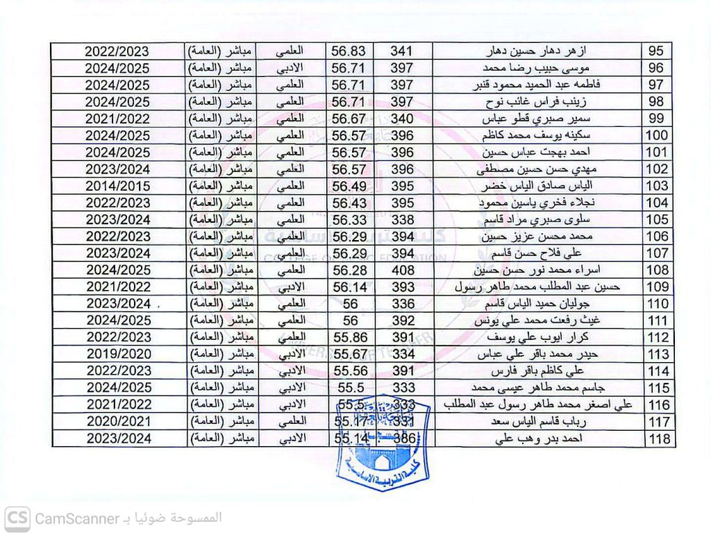 تعلن كلية التربية الاساسية في جامعة تلعفر عن اسماء المرشحين للقبول في الدراسة المسائية (القناة العامة) الوجبة الاولى للسنة الدراسية 2025-2026على الطلبة المقبولين مراجعة الكلية لغرض التسجيل ابتداءً من صباح يوم الأربعاء الموافق 5/ 11/ 2025 ولغاية نهاية الدوام الرسمي ليوم الاحد الموافق 2025/11/9.