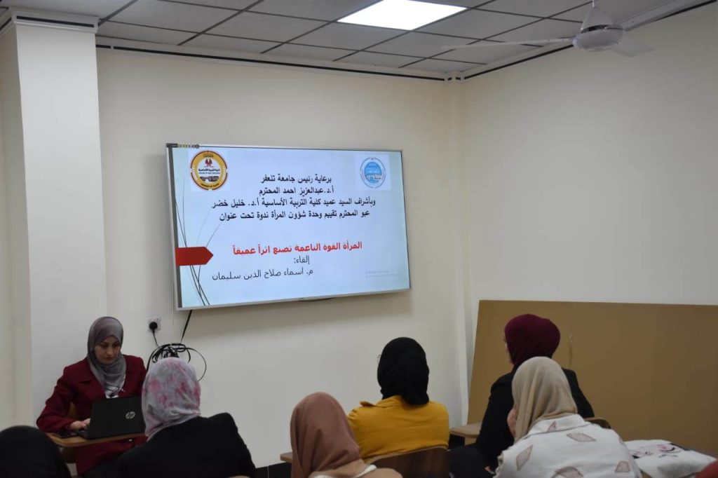 برعاية الأستاذ الدكتور خليل خضر عبو، عميد الكلية، نظم قسم الرياضيات بالتعاون مع وحدة شؤون المرأة ندوة بعنوان “المرأة القوة الناعمة… تصنع أثراً عميقاً”، قدّمتها المدرس أسماء صلاح الدين سليمان، وذلك يوم الأربعاء الموافق 19 تشرين الثاني 2025، بحضور التدريسيات والموظفات والطالبات.