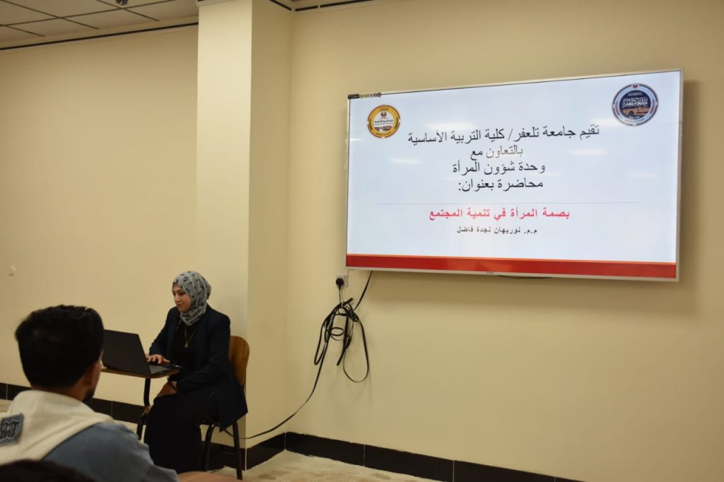 كلية التربية الاساسية في جامعة تلعفر تنظم محاضرة بعنوان {بصمة المرأة في تنمية المجتمع}.