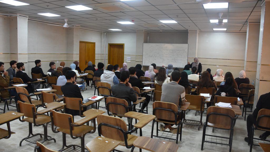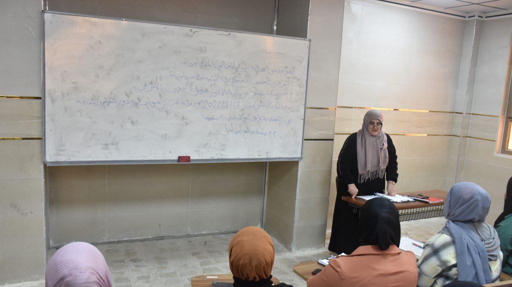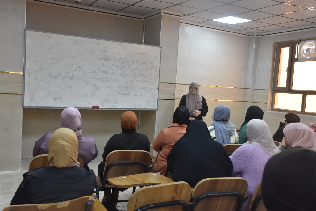 برعاية عمادة كلية التربية الأساسية، نظّم قسم اللغة الإنجليزية ورشة علمية بعنوان:«دور التعليم والثقافة في التصدي للتطرف والإرهاب»، قدّمتها المدرّسة المساعدة يمامة صالح إسماعيل، وذلك يوم الأحد الموافق 17 شباط 2026، بحضور طلبة المرحلة الثالثة.