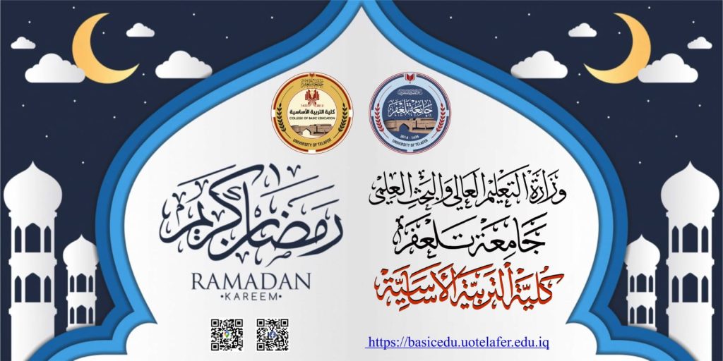 بمناسبة حلول شهر رمضان المبارك، يتقدَّم السيد رئيس جامعة تلعفر الأستاذ الدكتور عقيل يحيى الأعرجي، ومعه معاونا عميد كلية التربية الأساسية المدرس الدكتورة زينب علي حسين والمدرس أيدن محمد سعيد، بأصدق التهاني وأطيب التبريكات إلى السادة التدريسيين الأفاضل، والموظفين الكرام، وأبنائنا الطلبة الأعزاء في كلية التربية الأساسية، سائلين الله تعالى أن يجعل هذا الشهر الفضيل شهرَ رحمةٍ ومغفرة، وأن يعيده على الجميع بالخير واليُمن والبركات، وأن يوفقهم لمزيدٍ من العطاء العلمي والنجاح الدائم.