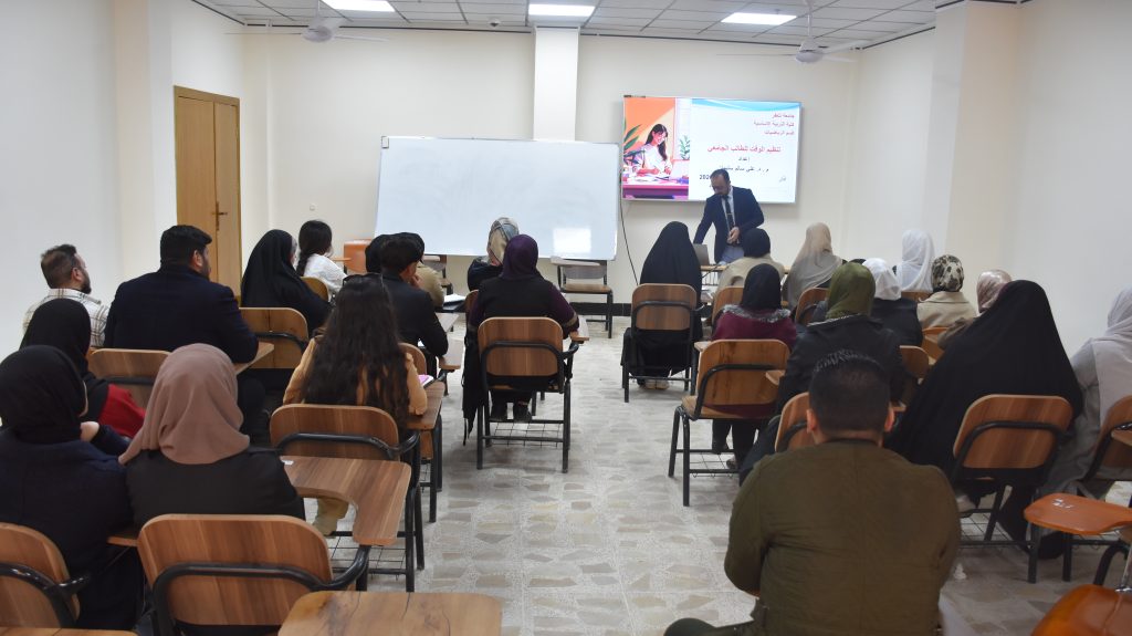 جامعة تلعفر كلية التربية الأساسية تنظم محاضرة إرشادية بعنوان (تنظيم الوقت للطالب الجامعي)