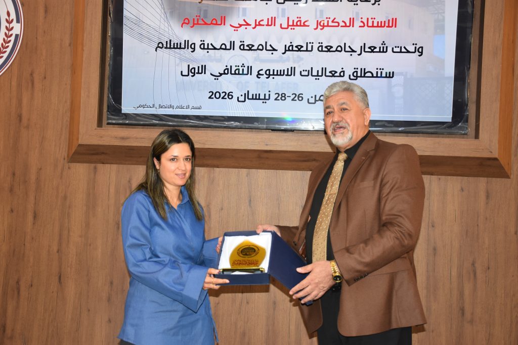 برعاية السيد رئيس الجامعة الأستاذ الدكتور عقيل الأعرجي، شهدت جامعة تلعفر، اليوم الأحد الموافق 26 نيسان 2026، انطلاق فعاليات الأسبوع الثقافي تحت شعار: “جامعة تلعفر… جامعة المحبة والسلام”، وبحضور رسمي وأكاديمي مميز.